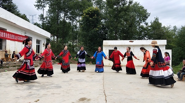 九是一次民族志愿服务活动:组织民族学生志愿者到凉山州越西县开展脱贫攻坚文化扶贫暨“四治”宣讲活动,把文明、爱心传递到贫困山区。(内江职业技术学院党委统战部)
